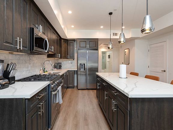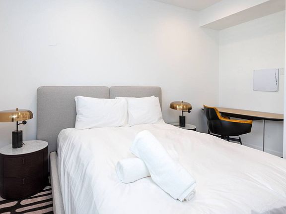 Discover your exquisite getaway in this newly built, modern masterpiece offering an unrivaled living experience. Nestled in one of Los Angeles' most vibrant and desirable neighborhoods, this elegant 2-bedroom, 2.5-bathroom residence blends luxury, comfort, and convenience to perfection, ideal for those with a taste for the extraordinary. The apartment features private balconies for both bedrooms, allowing you to soak in the vibrant city atmosphere. This sleek, contemporary residence sleeps up to 4 guests in style, with every detail thoughtfully designed to ensure the highest level of comfort. The master bedroom features a plush king-size bed, complete with premium linens and a spacious layout for your ultimate relaxation. The second bedroom offers a cozy queen-size bed, elegantly furnished to provide a restful atmosphere. The living area is a sophisticated sanctuary with high-end furniture and modern design elements, ideal for both relaxation and entertainment. The fully equipped kitchen is a culinary enthusiast's dream, featuring brand-new, state-of-the-art appliances, ample counter space, and custom cabinetry. The adjacent dining area offers a modern table and seating for four. The building offers private parking, ensuring easy access and security for your vehicle during your stay. Located just minutes from some of Los Angeles' most famous landmarks, this property offers unparalleled access to the best the city has to offer, including The Grove, Hollywood Walk of Fame, Rodeo Drive, The Getty Center, Griffith Observatory, Los Angeles County Museum of Art (LACMA), Venice Beach, Santa Monica Pier, Universal Studios Hollywood, and Walt Disney Concert Hall. No smoking, no pets, and no parties or events are allowed. Check-in is at 4 PM, and check-out is at 10 AM. Early check-in and late check-out may be available upon request. The home is equipped with smoke detectors and a carbon monoxide detector. The property is professionally cleaned and sanitized before your arrival, ensuring a safe and comfortable environment.