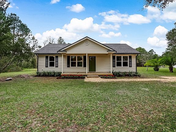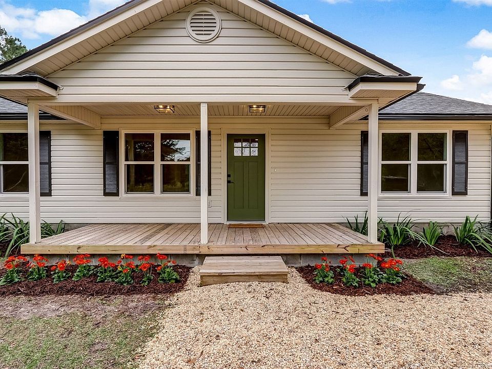 Charming, completely renovated home on 2 acres near Amelia Island, Florida. Nestled amidst nature, this cozy residence features modern upgrades and tranquility. Everything from a new roof, new windows, new kitchen with quartz countertops, new bathrooms, new appliances, and new flooring were meticulously renovated for a light and neutral esthetic. Enjoy the private stocked pond, spacious lot, and the allure of country living while still maintaining a close distance to pristine beaches and historic downtown Fernandina Beach. Bring your livestock, chickens, or furry friend to this Open Rural-Zoned property.