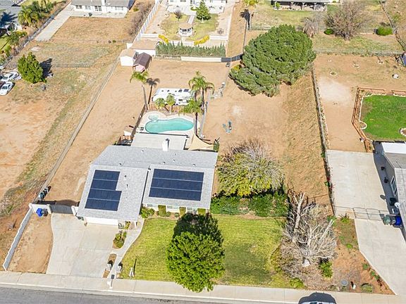 This spectacular Jurupa Valley horse property is a rare find. The single story, highly desirable 4/2 floor plan is ideal. Boasting a spacious interior and a large 30,000+ sqft lot, there are endless possibilities. Enjoy the view from this entertainers dream backyard. It features a sparkling pool and spa, a covered patio with lighting and fans as well as tons of area for seating. The dual RV parking on both sides of the home is a pull through to the back of the lot and has a sewer clean out option. So convenient for parking and storage. Tons of yard area for those family get togethers or additional structures. Energy efficiency is the name of the game with this property. There is a newer installed Solar energy system which is completely paid for. Say good bye to those electric bills and hello to your reimbursement checks at the end of the year! The newer dual paned windows throughout help to keep the house insulated as well as being a lovely decorative touch. This along with the upgraded electrical panel really take care of those big ticket price upgrades. The interior is neat and has been well maintained. Charming kitchen which has a ton of counter space and recessed lighting as well as a large living room with an on trend color palette. All the bedrooms are oversized and all have ceiling fans for your convenience. The master bathroom has been remodeled and has backyard access. Great for those quick bathroom breaks while at the pool. All of this and beautiful curb appeal.