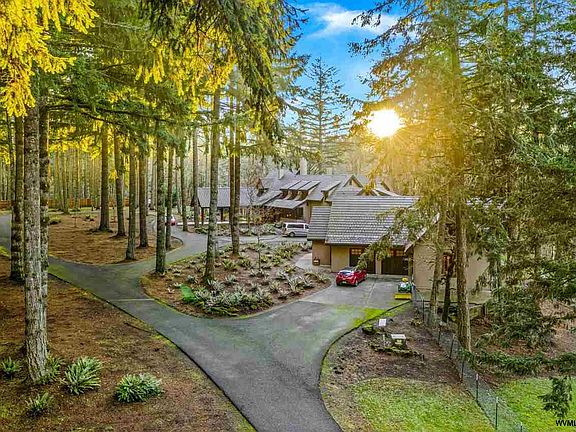 Stunning Estate in natural wooded setting! Spectacular gated entrance & fully fenced. Constructed w/ reclaimed Douglas fir timbers w/ stone accents, high ceilings, Maple floors, Carrara marble in main bath w/steam shower & tub, beautiful kitchen w/solid cherry cabinetry, Bosch, Wolf, & Subzero appliances. Pennsylvania blue slate fireplaces, copper gutters & downspouts, custom NW Door & Sash windows, plentiful outdoor space for entertaining, 5 geothermal heat pumps, 5 car garage, apt & also a guest quarters