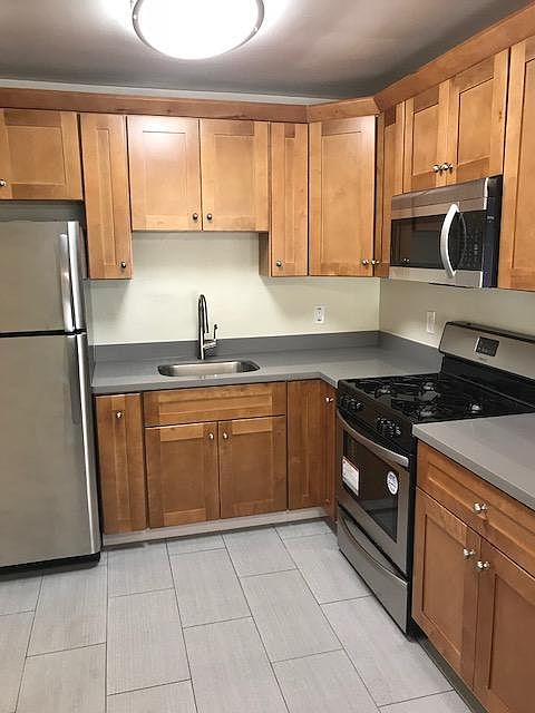 Sizeable kitchen with stainless steel appliances, quartz countertops and new cabinets.