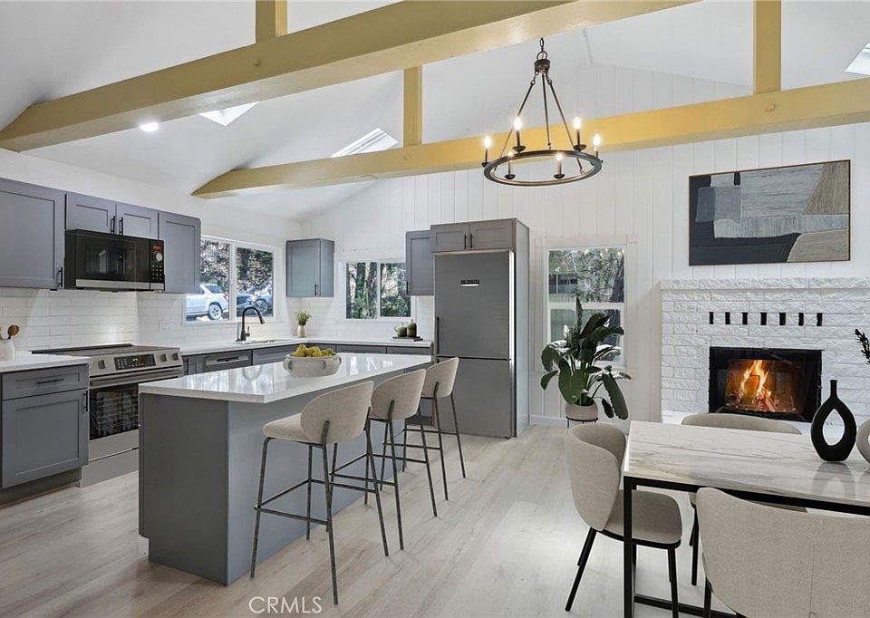 Just Reduced! Charming and inviting mountain home! This homes features a open floor plan with fresh new interior and exterior paint, new laminate flooring throughout, a cozy fireplace. The kitchen features beautiful new cabinetry, new counter tops, and new stainless steel appliances. Enjoy the nearby Lake Gregory with its surrounding beauty and water play as well as a walking trail that encircles the lake. Close proximity to shopping and restaurants. Must See!