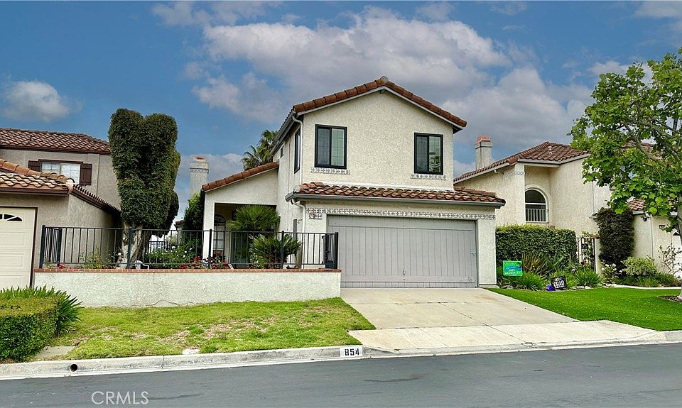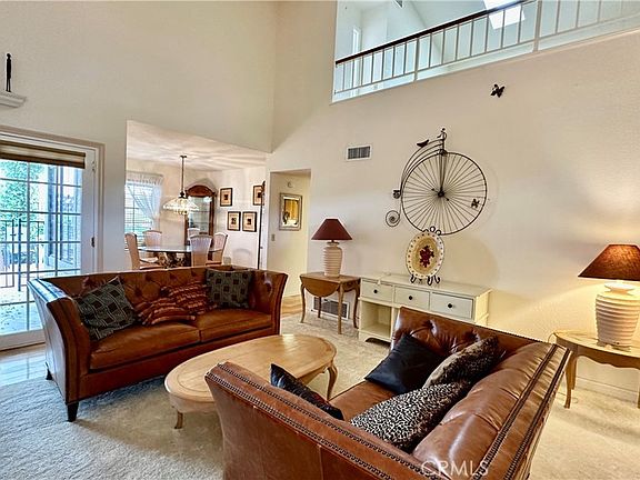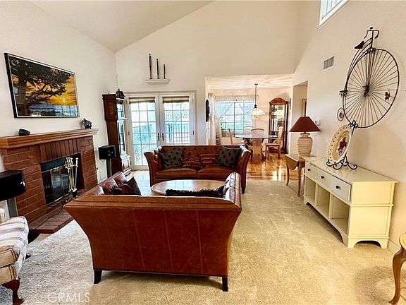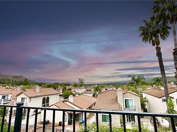 RARE FIND!!! Act Now - Nothing else is currently listed in this Highly desirable gated community of "The Fairways" in coveted Wood Ranch, with park like grounds and walking paths, community pool, spa and easy guest parking and just minutes from shopping, Starbucks, dining, hiking trails, golf course, schools and more. This light filled home features New Carpeting, 3 bedrooms, plus loft, 2.5 bathrooms, with over 1700 sq. ft. of comfortable living space on a great lot with serene mountain views to enjoy SoCal sunsets. Highlighted by energy and cost savings solar panels, a gated courtyard lined with beautiful roses, gleaming wood floors, vaulted smooth ceilings, French doors, recessed lighting and a direct access 2 car garage. The living room features a cozy fireplace and the sunlit dining room is conveniently off the cooks kitchen with tons of cabinet/counter space, breakfast bar and overlooks the family room. All bedrooms are upstairs and include a spacious primary suite with cathedral ceiling, view balcony, walk-in closet and an ADA walk-in bathtub. The secondary bedrooms offer mirrored wardrobe closets and the loft with skylight is a perfect area for a retreat, home office, library, fitness/yoga area…the uses are endless. Relax and unwind in your own private rear yard with flagstone patio, lush mature landscaping, and view – it’s perfect for a BBQ and dining Al’ fresco. This is the one you’ve been waiting for!
