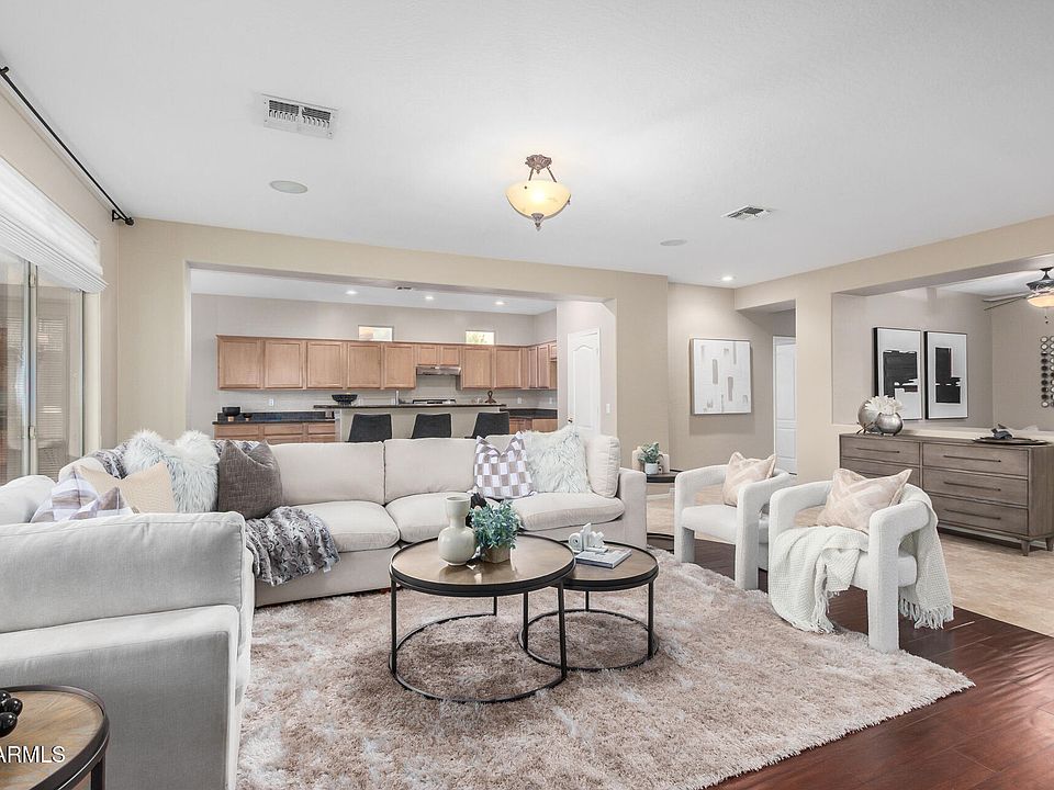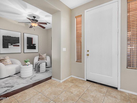 Explore Paseo Crossing and discover a 4-bedroom gem! A 2-car garage welcomes you, while a semi-open den invites cozy lounging. Great room is perfect for entertaining, complete with pre-wired surround sound, a gas fireplace, and stylish wall niches. Enjoy meals in the formal dining area or whip up culinary creations in a kitchen boasting Stainless Steel appliances, abundant cabinetry, a walk-in pantry, granite counters, and a center island with a breakfast bar. Main bedroom is a serene retreat with direct backyard access, a private bathroom with dual vanities, a soaking tub, and a walk-in closet. Outside, the covered patio and generous backyard with plenty of space to design a pool oasis or sizzling BBQs. This gem isn't just a place to live, it's where memories are made! Welcome home