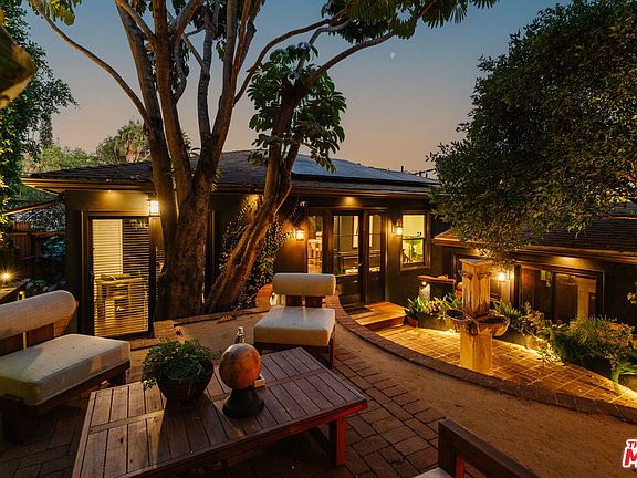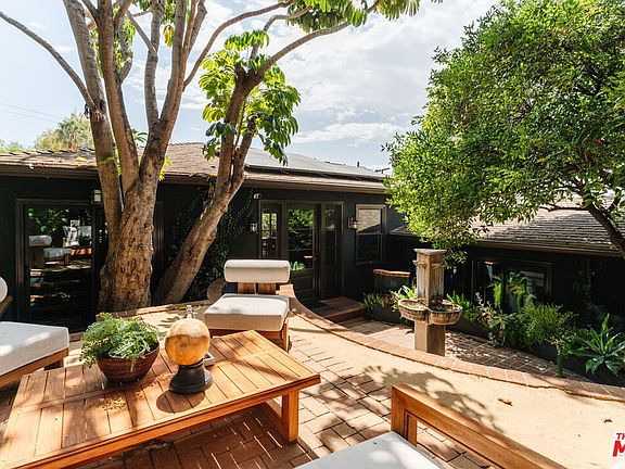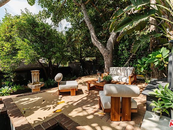 Hidden from the street and approached through a gated courtyard, 854 Kodak Drive is a Silver Lake compound with presence and discretion. The lush entry garden planted with soaring bird of paradise and anchored by an outdoor fireplace sets a tone of seclusion and calm. Inside the highly updated bungalow-style residence, the main level opens to a seamless living, dining, and kitchen space finished in Farrow & Ball paint and hardwood floors, with a stately mantled fireplace as its centerpiece. Floor-to-ceiling glass doors extend to a wraparound deck with hillside views and a glimpse of Downtown. Two bedrooms and a full bath complete this floor, along with a club-like bonus room where wood ceilings, custom cabinetry, a fireplace, and a marble-topped bar create an atmosphere for intimate gatherings. The lower level is anchored by the primary suite, with a walk-in closet lined in custom built-ins and a marble-clad bath detailed with designer fixtures and underfloor heating. A fourth bedroom with a private entrance and full bath functions as a discreet guest suite, office, or rental. Both bedrooms open to a walled garden shaded by mature trees and climbing vines, complete with an outdoor shower and wiring for a future hot tub.Positioned near Sunset Junction and Virgil Village, and close to Bellevue Recreation Center and Park, the property offers privacy, architectural character, and a rare sense of quiet luxury in one of Los Angeles's most coveted enclaves.