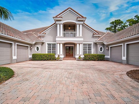 One or more photo(s) has been virtually staged. Set on a private cul-de-sac within The Oaks, this revitalized estate captures the essence of elegant Florida living. From the moment you enter, the home’s light-filled, open design and thoughtful updates make an immediate impression. The main living spaces flow effortlessly from the chef’s kitchen to expansive entertaining areas and out to the lanai, where golf course views frame the heated pool, spa, and outdoor kitchen. The first-floor primary suite is a true retreat, featuring high ceilings, multiple closets, and a flexible sitting area that can serve as a nursery, gym, or private office. Upstairs, guests enjoy their own wing complete with a loft, theater, and screened terrace—ideal for relaxing or hosting in style. A split four-car garage, custom finishes, and generous room throughout reflect the craftsmanship expected in one of Sarasota’s most distinguished country club communities. The Oaks offers 24-hour security, two championship golf courses, an acclaimed racquets program, fitness and wellness facilities, and fine dining—all just minutes from the beaches and top-rated schools. Experience this home for yourself—take the 3D virtual tour and book your private showing today.