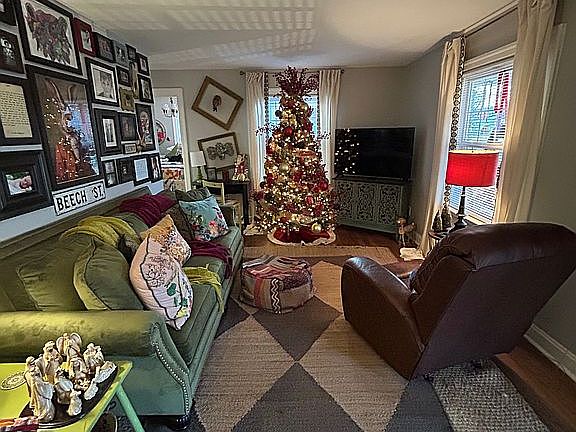 Step inside to an inviting floor plan featuring hardwood, tile, and vinyl flooring throughout. The living areas are bright and welcoming, highlighted by a cozy sunroom — perfect for relaxing evenings or entertaining guests. Adjacent to the kitchen sits a versatile dining room, with a gas fireplace, perfect for meals and gatherings.