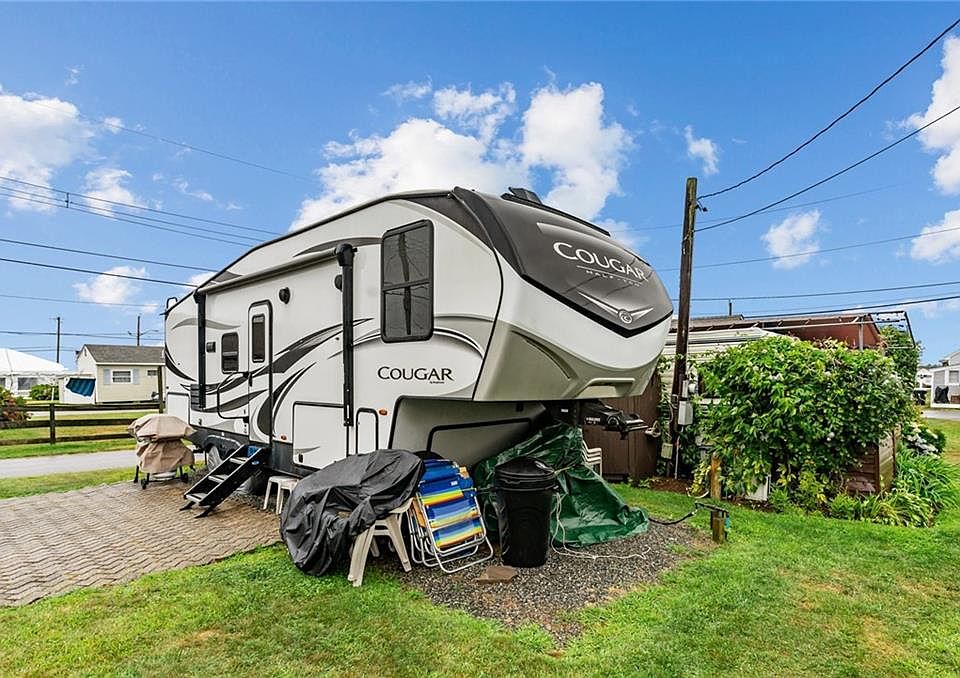 Here is your opportunity to come and be a part of a vibrant and active community at Mary Carpenter's beach in the heart of Matunuck! Spend your summers down by the beach taking a part in any of the numerous events the community has from dinners, to barbeques to field trips for kids there is something for everyone to enjoy! This particular lot boasts a wonderful view of the water and features a beautiful like-new 28ft fifth wheel trailer manufactured in 2020. The trailer can sleep 6 and features a nice fireplace on the inside, master bedroom area with a queen bed and an exterior built in grill and patio area for enjoyable outdoor entertaining. The AC, Refrigerator and Fireplace are brand new within the last year! Book an appointment today to capitalize on this great opportunity to have an affordable summer location a short walk to some of RI's best beaches and dining!