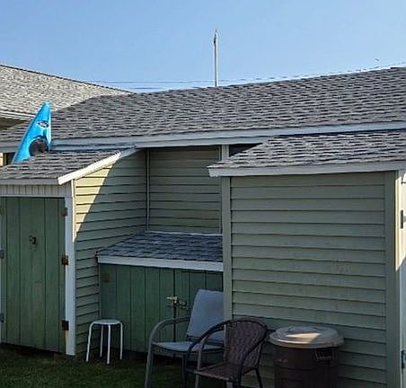 New laminate flooringNew roofNew vinyl sidingLarge kitchenOutdoor showerIndoor shower