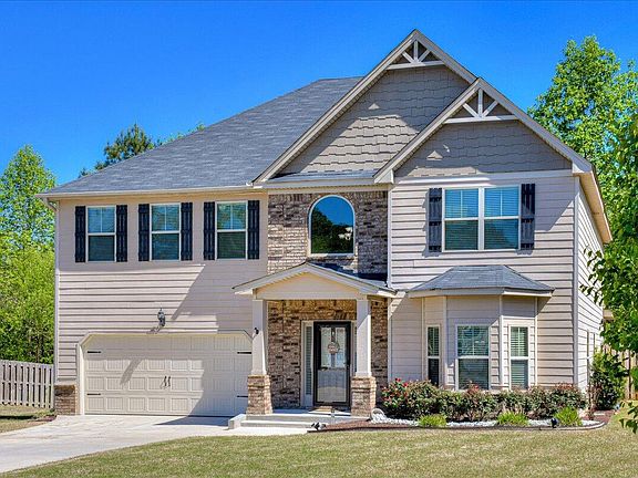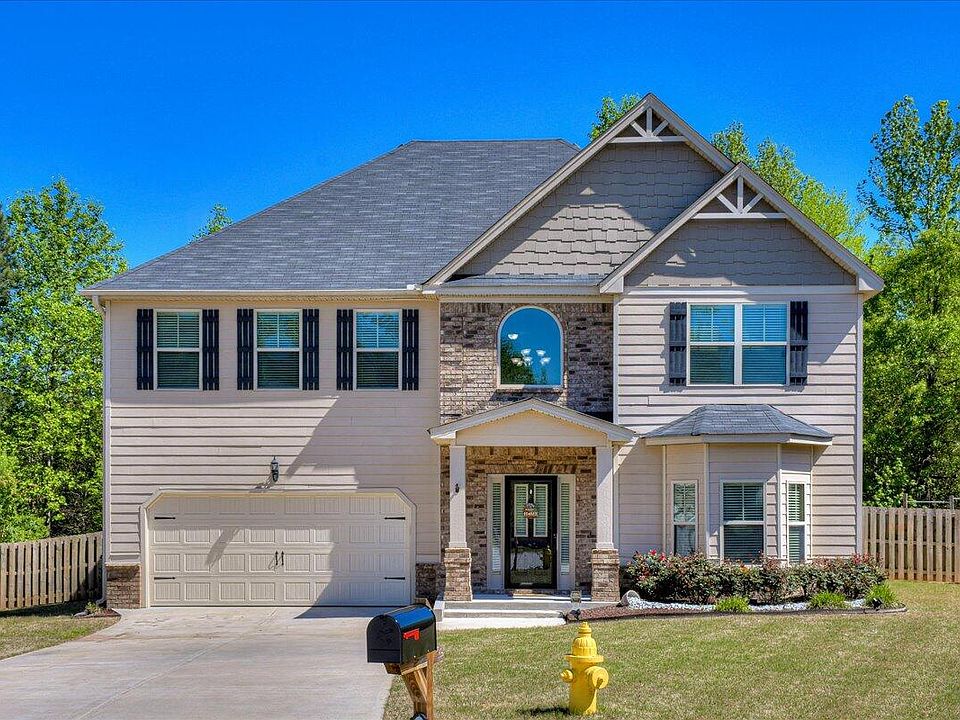 Gorgeous 2 Story home within minutes of Fort Gordon! Enter through the oversized foyer into the eat-in kitchen that opens up to family room that is ideal for family and entertaining. The custom kitchen to include granite countertops and island, tile backsplash, recessed and pendent lighting, double ovens, new cooktop and an upgraded black stainless-steel fridge. All the bedrooms are upstairs and have been freshly painted. Double doors invite you into the oversized master's suite which features a stunning custom closet, dual vanities and a large garden tub with a separate, remodeled, stand up shower. Jack and Jill bathroom adjoin two of the other bedrooms upstairs. Out back you will find a large, screened in patio with ceiling fans. Home backs up to a wooded area for your privacy.