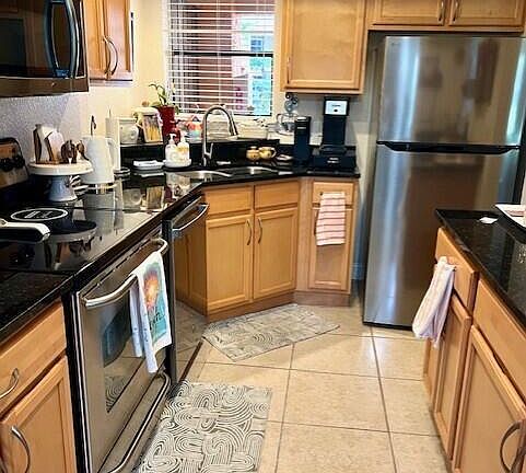 Granite countersGround floor unitLaminate in the bedroomsFamily roomTile floorsUpdated kitchenNewer stainless appliances