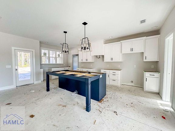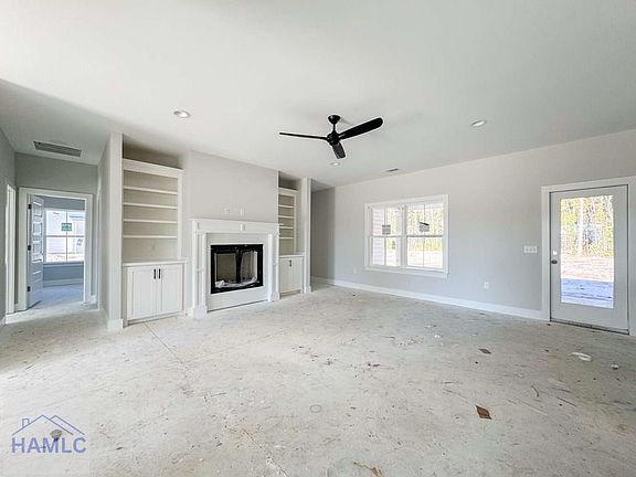 Spacious 4-bedroom ranch plan on a half-acre lot in Midway! Close to Hwy 17 & I-95! The Newport plan features a welcoming front porch with foyer entry. A fireplace with built-ins impresses in the family room! Three bedrooms & a hall bath are all located off the family room. Step out to the back porch to enjoy your backyard from the family room! The kitchen sparkles with two-tone cabinetry, quartz counters & tile backsplash- plus a walk-in pantry. Enjoy an extended depth island perfect for casual dining & entertaining! Take a hallway off the kitchen to the laundry room, half bath, garage access & the primary suite! Your secluded primary suite features plank flooring, and access to the back porch, along with a private bath & large walk-in closet. Tile flooring, soaking tub, tile shower with pan insert & quartz vanities are all features of the private bath. Estimate completion January 2025. Exterior photo does not represent actual home or selections chosen for this listing.