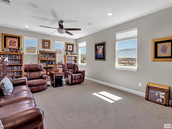 Come see this beautiful luxury home in the Quest community at Merdian 120 in Verdi. This home has many designer features throughout and shows just like a model home. You will enter to find an exceptional kitchen with upgraded custom cabinets with rollouts, full back splash at range, granite countertops, pantry. large gas cook-top, engineered hardwood floors, high ceilings and the perfect open floorplan for entertaining. All bedrooms are very spacious, and the master has upgraded granite counters and tile. Mudroom includes upgraded cabinets. Home includes 3 car garage with insulated door. You will-love your mountain views in this amazing community. Sellers included over 70K in landscaping so your back yard will feel like a true retreat. You will also find a storage shed with motion sensors. This really is the perfect home!