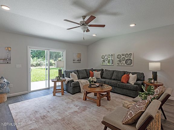This beautiful 4/2 home just completed is a real gem. Nice sized lot! The open floor plan creates a welcoming atmosphere, perfect for family gatherings or entertaining friends. White cabinets and granite counters bring a modern and stylish touch to the kitchen, while wood look vinyl planks in the living areas add durability and charm. Having carpet in the bedrooms adds a cozy and comfortable feel to those spaces. This home offers a great blend of practicality and aesthetics, with features that are both stylish and easy to maintain. Located near shopping, dining, and other amenities. This is a wonderful place to call home! This home is equipped with a performance based engineered septic system, which has a city required yearly maintenance agreement. IF ANY CAGES PRESENT, THEY DO NOT CONVEY