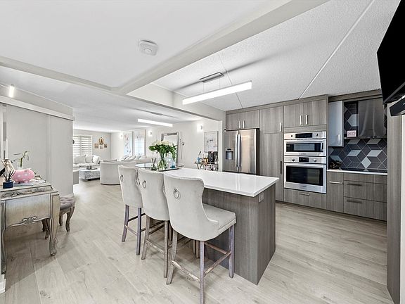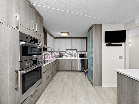 Step into this stunning, one-of-a-kind condo that seamlessly blends sophistication with modern European design. One of the largest units in the building, offering 1,560 sqft of living space. With open floor plan, this residence stands out with its stylish finishes and thoughtful details unlike any other unit. The gourmet kitchen features quartz countertops, custom soft-close cabinetry, built-in stainless steel appliances, a glass-door pantry, and a center island with seating and a wine cooler - perfect for both everyday living and entertaining. The sun-filled living and dining area flows effortlessly onto an oversized **22x7 private balcony**, where you can enjoy skyline views and abundant natural light. Two generously sized bedrooms include a serene primary suite with a walk-in closet and spa-like ensuite bath. Additional highlights include wide-plank flooring throughout, in-unit laundry, a built-in entertainment system, and **an exceptionally large storage room**. To complete the package, this home comes with **2 owned garage parking spaces in the heated garage** - a rare find. Located in a desirable community close to schools, shops, dining, entertainment, and transportation, this condo is the perfect balance of convenience and modern luxury. (HOA fee cover all utilities except electricity. Taxes do not reflect any exemptions, as the owners never applied for a homeowner's exemption). Schedule a showing before it's gone - an amazing opportunity with nothing to do but move in and enjoy.