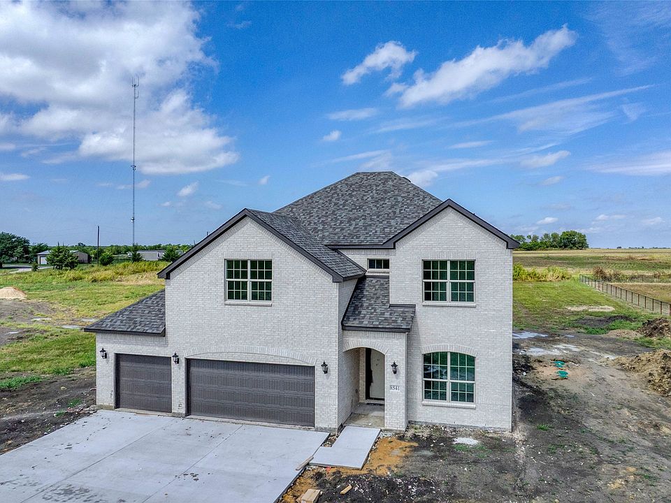 **1-ACRE HOME SITE!**STONEHOLLOW HOMES** 3-CAR GARAGE! HIGHLY RATED BLUE RIDGE ISD! *BASALT FLOOR PLAN* Country living at its finest! Welcome to this exceptional 5-bedroom, 4-bathroom home w. a game room and media room and over 3,000 sq.ft. of thoughtfully designed living space. Perfectly situated on a 1-acre homesite in the countryside of Blue Ridge, Texas. This home offers luxury living inside and out. An open floor plan w. high ceilings and plenty of large windows to let in all of the natural light. A gourmet kitchen appointed with maple Portobello stained cabinets and luxurious quartz w. a hint of gold and a stunning backsplash tile to bring it all together. Warm and bright is where it's at! An expansive kitchen island with WATERFALL QUARTZ amplifies the tone of luxury. A 9 FT WESTERN SLIDER! The family room literally has soaring ceilings. The corner fireplace makes its own statement with Charcoal Moroccan Concrete 12x24 tile to the ceiling! Get ready for more luxury as you walk into the Primary Suite! A Primary Bath w. a FREESTANDING TUB! FRAMELESS SHOWER GLASS ENCLOSURE! TWO VANITIES! TWO LARGE WALK-IN CLOSETS! AND, the beautiful Portobello stained maple cabinets paired w. oversized Carrara tile w. white quartz that has a TOUCH OF GOLD! Beyond this there is a game room and an oh, so spacious media room upstairs along w. a few other bedrooms and baths. Other FEATURES INCLUDE 5 in. baseboards, coach lights on front of home, insulated 3rd car garage, black hardware, stainless appliances, full gutters, partial sod, partial sprinkler. So much more! Don't wait! This is one of the last homes in PIONEER ESTATES!