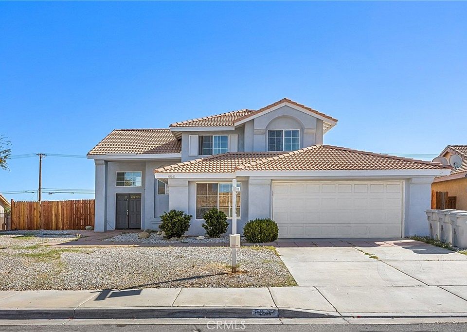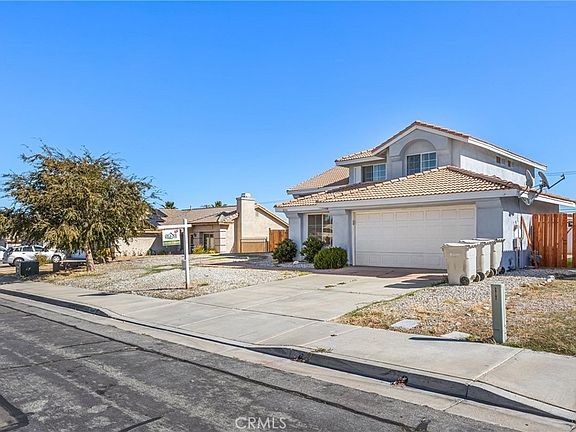 Welcome to this beautifully maintained 5-bedroom, 3-bathroom pool home located in a desirable Hesperia neighborhood! With over 2,100 sq. ft. of living space on a 9,400+ sq. ft. lot, this home offers the perfect blend of comfort, style, and function. Step inside to a formal entryway leading to spacious living and dining areas filled with natural light. The open floor plan is ideal for family living and entertaining, with a comfortable flow between the kitchen, dining area, and family room. Enjoy the privacy of a downstairs bedroom and bath, perfect for guests or a home office. Upstairs, the primary suite features ample space, a private bath, and great views. Outside, enjoy your own backyard oasis complete with a sparkling pool and covered patio—perfect for barbecues, gatherings, and relaxing in the desert sun. The low-maintenance landscaping and driveway with attached 2-car garage make this home as practical as it is beautiful. Conveniently located just minutes from the freeway, close to shopping, schools, parks, and dining, this home offers everything you need for comfortable living in Hesperia. No HOA No Mello-Roos