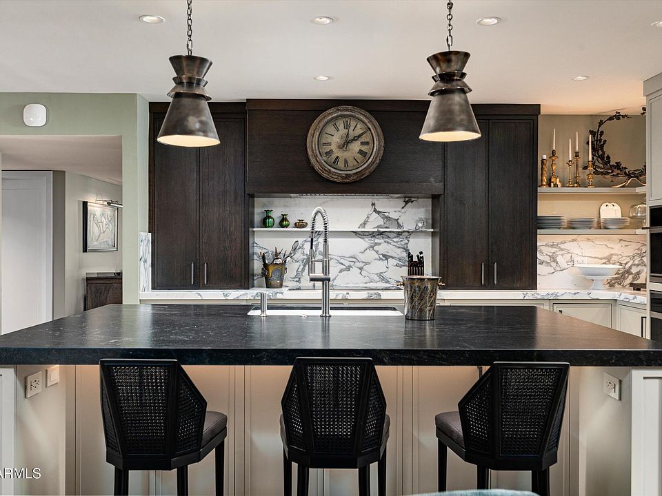Impeccably designed, this single-level residence showcases top-tier aesthetics and unparalleled quality within an efficient footprint in a prime Scottsdale location. Exquisite espresso-stained white oak cabinetry, Ice Flow marble countertops, and a leathered granite island set the tone for refined sophistication. High-end appliances and integrated smart home features enhance remote usability and efficiency. Throughout, custom-curated designer fixtures, bespoke upholstery, and rich fabrication reflect exceptional craftsmanship and intentional design. New low-E window & door package, Lutron LED recessed lighting, 2022 HVAC, and epoxy garage flooring this ultra-secure, one-of-a-kind residence blends luxurious tailored living, with modern convenience. SEE DOCS TAB FOR COMPLETE UPGRADES LIST!