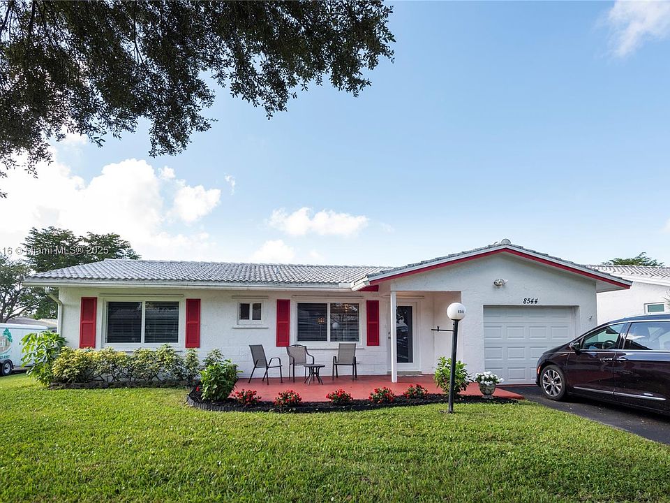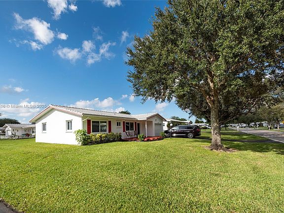 Centrally located Lauderdale West **Corner Lot** 2 bed/2 bath approx 1468 living sf 1638 sf w/garage, 55+ Community with new  Impact windows and doors 2024. Newer tiled roof 2019, New AC/Heater 2024 & New hot water tank 2025. Garage door 2023. Roof 9 years old. Eat in kitchen, Living room, dining area and separate family room. Large rooms, primary bed w/large walk in closet-ensuite bath with dual sinks, shower & linen closet Washer, Dryer & fridge in garage stays. Assoc. Fee Includes: Fiber Optic HDTV & Internet, Free community bus at your door, Lawn Service, Exterior painting, Huge Clubhouse, 2 Pools Tennis Courts, Pool Tables, Ping Pong, Card rooms, Professional Shows, Fitness Center & more! This home is a must see! Home can be purchased turn key or emptied out if needed.