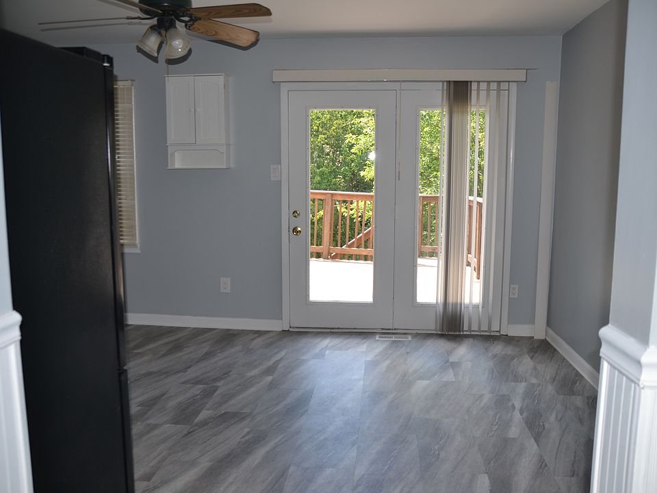 Enjoy a fenced backyard with a spacious walk-down deck, perfect for relaxing or entertaining. Water is included in the rent. Residents also have easy access to the large community pool via a charming wooded trail.