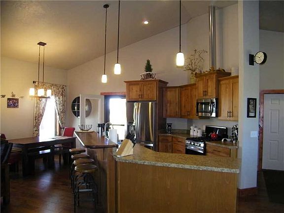 Rural Retreat! Forever views from this nearly new home! Vaulted ceilings in the main living area, custom kitchen w/stainless steel appliances, 3 bedrooms, 2 baths, wood stove, 3 car attached heated garage, patio w/fire pit, undergrnd sprinkling