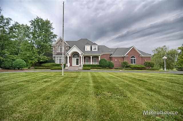 All sizes apprx. Very nice 3,600 sq. ft. 1 1/2 story home on 3.7 picturesque acres w/pond and 36' x 24' 2nd garage with cement floor, heat & 220 electricity for perfect man-cave (garage parking for 7 cars total), large hearth room w/2nd fireplace off kitchen, finished basement, huge deck across back of home overlooking pond w/waterfall, covered front porch, 2 half baths, dual staircases to 2nd floor, circular drive, hardwood floors, maintenance free exterior and seller is offering quick possession.