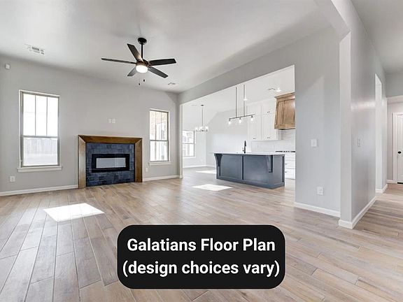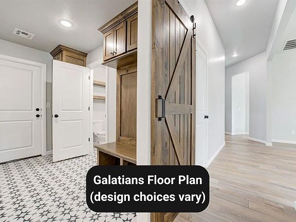 Ask about our incentives! The Galatians floor plan offers 2,117 square feet of thoughtfully designed living space with 4 bedrooms, 2.5 bathrooms, a private study, and a 3-car garage. The open-concept layout connects the living room, kitchen, and dining area, featuring a large island, walk-in pantry, and mudroom for everyday convenience. The primary suite includes a spacious bedroom, spa-style bathroom with dual vanities and soaking tub, and a walk-in closet with direct access to the laundry room. Three secondary bedrooms and a dedicated study provide flexibility for families or remote work, while the covered back patio creates the perfect outdoor retreat. The Galatians combines modern functionality with classic Oklahoma style.