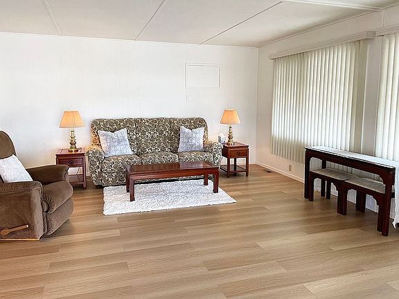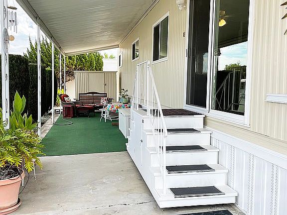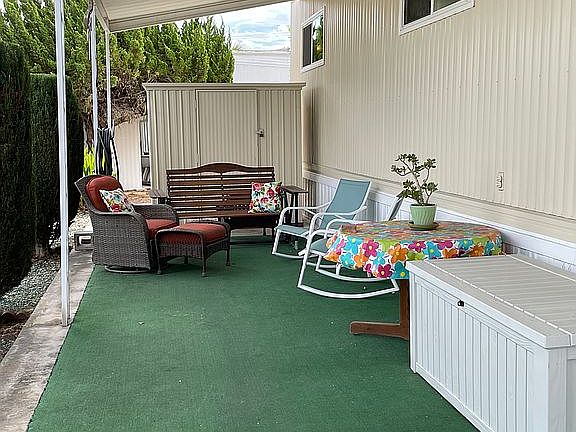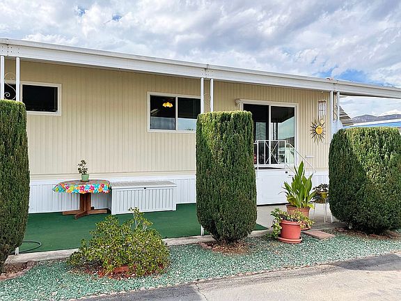 OFFER PENDING: Spacious, private corner lot with view of the mountains. Large front windows face the west for the ocean breeze. Highly desirable location in Mission Gorge Villa MH Park. This is a 55 and over park. Home space rent $763.00 + utilities.