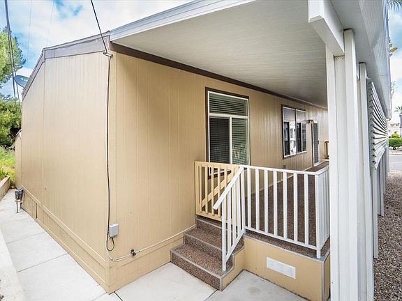 Wow a 3-bedroom unit in a 55 and over park! Super clean and move in ready on this newer home. Feel at home from the moment you walk onto the cover front porch with railing and privacy slats. Front door opens to a comfortable, open floor plan. Livingroom, dining area and kitchen that boosts stainless steel appliances and yes, the refrigerator is included. Enjoy the spacious laundry room that has access to the covered carport. Extra storage in a large shed is an added bonus. Come see what Mission Gorge Villas has to offer! You will be saying "I have to live here."