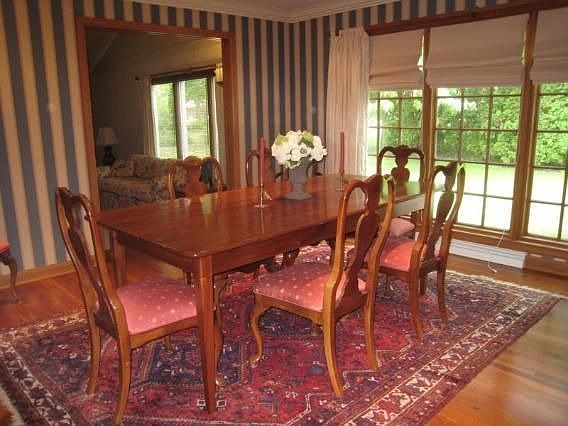Long term owner offers this lovely, refreshed ranch with impressive interior space. Beautiful living room with brick fireplace opens to the spacious, sunken family room. Kitchen boasts Corian counters plus an island snack bar with prep sink. Formal dining room with cherry flooring. Three bedrooms (one converted to den), are all good sized. Master includes large sitting room with skylight and laundry closet and updated master bath. New carpeting, polished hardwood floors.