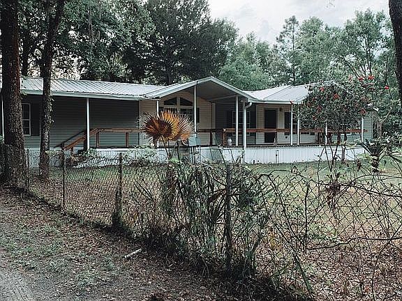 Rare Find!! Once you pass thru the gate, and follow the curved driveway past the pond, this 6 Acres of private treed property you will find a 4 bedroom 2.5 bath manufactured home with a 6 yr old metal roof and 4 yr old heating and cooling system. The front and back are each fenced separately and both have covered porches. The property also offers large 30 x 50 metal building, with 10 ft. x 50 ft. open end storage areas on on each side. A little TLC and you will have your dream property perfectly secluded, but just minutes from school, churches, shopping and airport. No city water and sewer, as this property comes with private septic, and shallow and artesian wells.