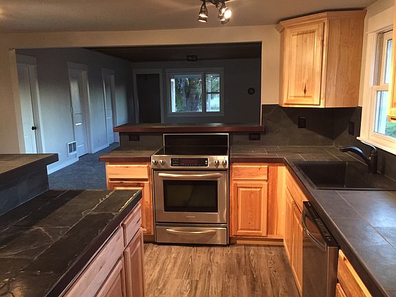 Beautifully remodel 1833 sq.ft. 3 bed/ 1.75 bath 2 story home on over an acre. Spacious new kitchen with tile counters, new cabinets, 2 bar areas, and stainless appliances. Large living room, new carpet, laminate, interior doors, trim and paint. Bathrooms are completely remodeled, large master suite with sitting room/office area, private patio and walk in closet. New roof, siding, trim, decks, exterior paint, new concrete parking area and gravel. Large yard w/outbuilding on a corner lot.