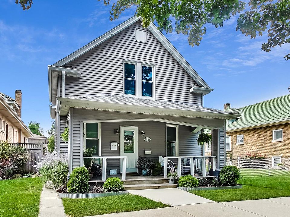 Welcome to this completely updated 3 bed 2 bath, 2-story Cape Cod located in desirable East Morton Grove! Spend your summer nights on the inviting front porch of this well maintained beauty, and days entertaining on the sun-filled backyard patio. This lovely home features a newly updated kitchen with stainless steel appliances, first floor bedroom, office or guest room, updated bath with a claw foot tub, and high ceilings. Upstairs you'll find the spacious primary and secondary bedrooms with walk-in closets, additional updated full bath, and conveniently located 2nd floor washer and dryer. Spacious 2 car garage with a large additional storage area. Highly sought after location in Parkview Elementary and Niles West school districts, and conveniently close to Metra, public transit, nearby parks and trails, shopping, dining and entertainment. Updated, well maintained, and ready for the next owners to move right in. A Must See!
