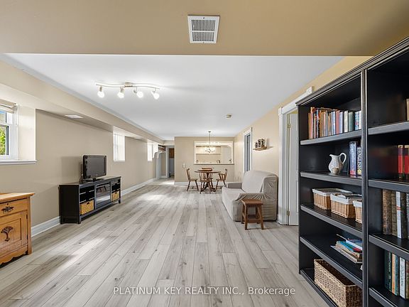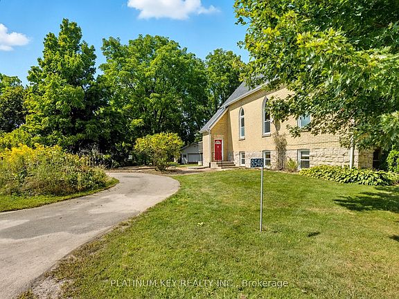 Set on over a third of an acre with mature trees, this Raised Bungalow, formerly St Andrews Church, offers a rare combination of space, character, and function. With 2 spacious bedrooms, 1 full bath, a detached garage/workshop and A1 zoning designation, this home offer a unique opportunity with lots of possibilities. The upper-level great room features 19' vaulted ceilings, wide plank pine floors, pointed arch windows, and a pellet stove fireplace, with walkout to a private sundeck. The lower level includes a bright kitchen with pass-through, dining and living area, two bedrooms, laundry, and a three-piece bath with clawfoot tub. Outside there is ample parking, plus the detached powered shop. Located on the edge of Mount Brydges with quick access to London, Strathroy, and Hwy 402, while still enjoying the welcoming small town community, schools, parks, arena, and local amenities Mount Brydges is known for.