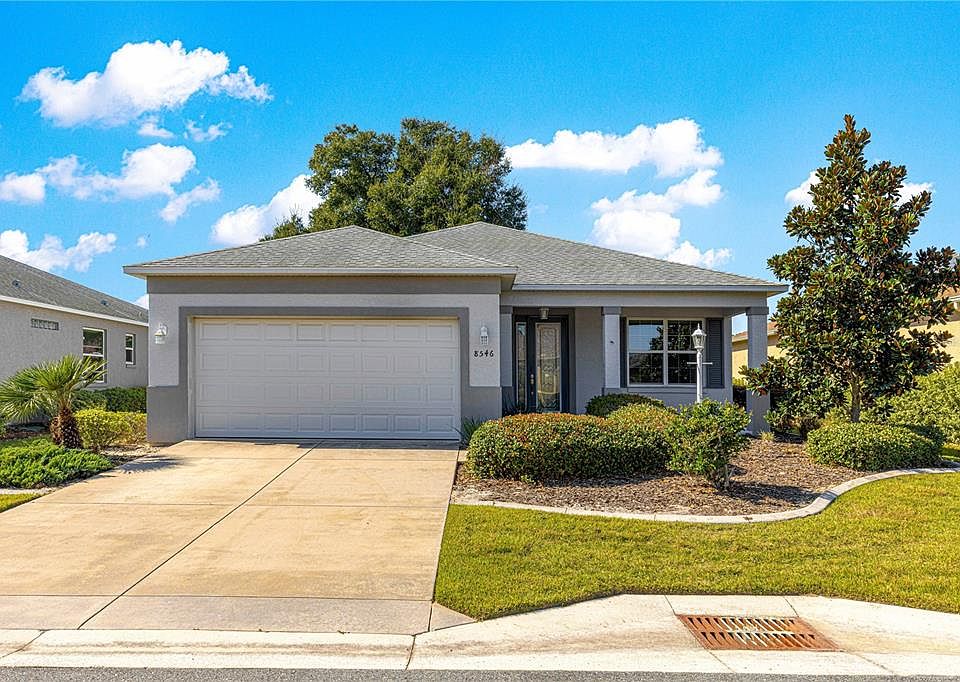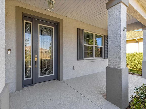 Welcome to this better-than-new Aster! The concrete curbed landscape and inviting front porch set the scene for what to expect when you walk in through the 8-foot leaded glass front door. Showcasing 20x20 tile in all the main living areas, this home balances style and ease of maintenance. The upgraded kitchen features granite counters, 42-inch cabinets, and black stainless steel appliances. There is a perfect nook in the kitchen for a breakfast table right by a bright double window. The living area shows large and light with ample room for your furniture and built-in electric to wall-mount your tv. The primary bedroom is generous, and the ensuite features a spa-like walk-in shower and large counters with double sinks. Levelor blinds, upgraded pads on the carpet, smart home functionality, and a great neighborhood make this home stand out. The screened-in lanai features added privacy curtains and a hot tub that conveys with the home! The manicured backyard setting feels private with mature and attractive landscaping. Located in Ocala’s premier 55+ community, this home provides access to unmatched amenities: golf courses, fitness centers, pools, dog parks, clubs, entertainment, adult education, and miles of walking trails. Move-in ready and perfectly located—this is the Florida lifestyle you’ve been waiting for. Schedule your private tour today!