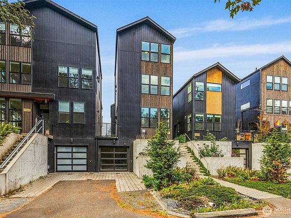 Your favorite urban retreat awaits! Exceptional modern residence in the heart of Greenwood built in 2022 with a striking blend of refined finishes & sophisticated design throughout.The gourmet kitchen features quartz countertops,modern cabinetry & high-end ss applcs opening to a light-filled liv rm w/expansive windows & hdwd floors.Penthouse owner's suite & spa-like bath w/quartz counter,oversized sink,heated marble floors & tile WI shower.2nd bd w/huge WI closet & elegant bath featuring quartz counters,heated marble floors & tub w/tile surround.Versatile lower level w/ ¾ bath—ideal for bonus or guest space.Private deck & 1 car garage wired for EV charging.Steps to Greenwood park.Near Green Lake,dining,parks,transit & Dntn Seattle. No dues!