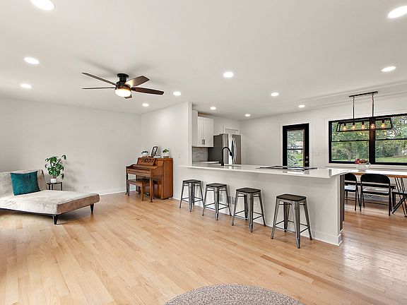 Gas fireplaceNew sump pumpWalk-in pantryAttached garageOpen conceptRemodeled kitchenLarge laundry room