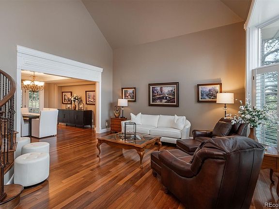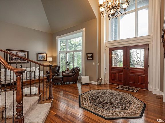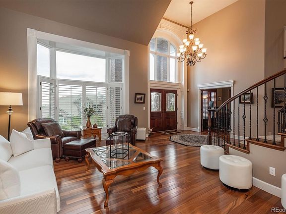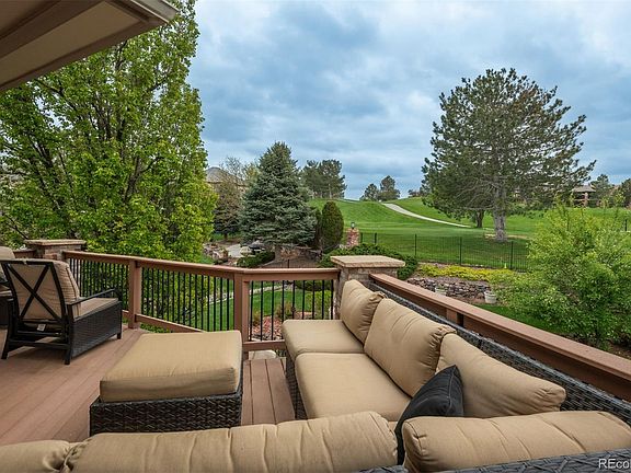 This home in Heritage Estates is truly luxurious and meticulously designed, offering an exceptional living experience nestled alongside the Lone Tree golf course. The attention to detail is evident from the moment you step into the grand foyer, with its Anderson windows flooding the space with natural light. The seamless flow between the office, living room, and dining room, enhanced by French doors leading to a picturesque deck, sets the stage for effortless entertaining. Custom wood designer accents, vaulted ceilings, and plantation shutters further elevate the home's elegant charm, while hardwood floors add warmth to the main living areas. Culinary enthusiasts will appreciate the kitchen's top-of-the-line amenities, including a Subzero refrigerator, double oven, & custom cabinetry with thoughtful features like soft-close drawers & pull-out spice racks. The family room, with its beautiful fireplace and built-ins, provides a cozy retreat for relaxation. The primary suite offers a serene oasis, complete with a heat glow fireplace, walkout to the deck, and a luxurious jacuzzi tub in the ensuite bath. Upstairs, three additional bedrooms with en-suite baths ensure comfort and privacy for family or guests. The walk-out basement is designed for both relaxation & entertainment, featuring a spacious rec/media room with a wet bar and granite countertops. A gym area/bedroom adds versatility to the space, while the outdoor hot tub and meticulously landscaped yard provide additional opportunities for enjoyment and relaxation. Located in the gated community of Heritage Estates, residents have exclusive access to amenities pickle ball, tennis & pool. While being surrounded by the natural beauty of the Lone Tree Golf Course. This home offers 2 furnaces, 2 air conditioning units. It is to close proximity to shopping, dining, entertainment, as well as easy access to major thoroughfares including I-25, C-470, and the light rail, this home truly offers the epitome of luxury living.