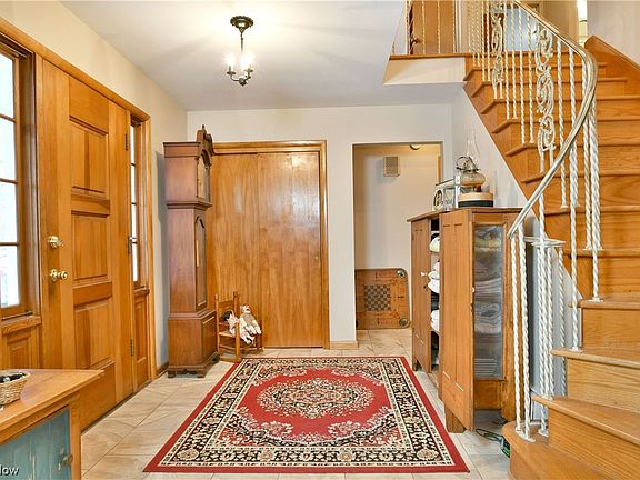 Start the new year off in style with this stunning Howland Township home, showcasing over a half acre of land and an expansive 4 bedroom layout with 3 levels of finished living space! Settled away in a desirable neighborhood on its tree-lined lot, the residence quickly captivates with its picket-lined and covered front porch trimmed with well-manicured landscaping. The backyard continues to reveal a substantial rear deck and a charming storage shed w/ electrical service. A grand foyer welcomes you inside with its tiled flooring and beautiful woodwork including a spiraling staircase. Exposed truss work runs overhead in the nearby living room as the stained hardwoods are warmed by the brick-lined fireplace. Natural light pours through the tall picture windows at each end. Opposite, the formal dining room delights with access to the front porch and its own fireplace. An impressive updated kitchen spans the rear of the 1st floor, encompassing casual dining as quartz countertops glisten beneath the recessed lighting. Hickory finish cabinets pair with a large center island, looking on towards a finished sunroom. A colorful half bath is found just before access to the attached 2-car garage and the large 1st-floor laundry room to complete the floor. Upstairs, an oversized master bedroom suite steals the show with its spacious entrance, fireplace, and fully updated private bath. The 3 remaining bedrooms join a lavish full bath with elegant tile work. Each of the bedrooms are nicely sized and offer great closet space. The basement level includes a finished rec room, storage room, & utility space with an additional shower & Sauna that stays. Updates include: roof 2011, kitchen remodeled 2014-2015, laundry room & half bath remodeled 2014, upstairs baths 2015 & 2022, rear deck 2021, main electric box 2014, attic over insulated & perimeter joist 2015, outside drains 2014, flooring throughout 2014-2023, storage shed (14"x20") 2021, and so much more plus a one year Home Warranty!