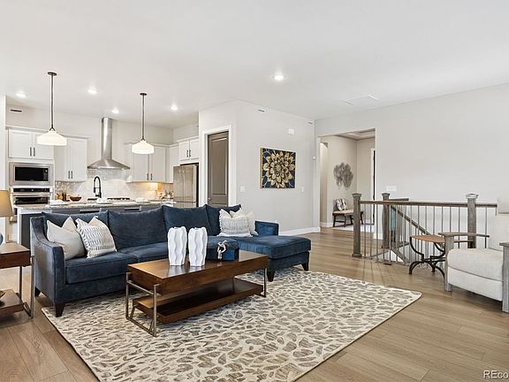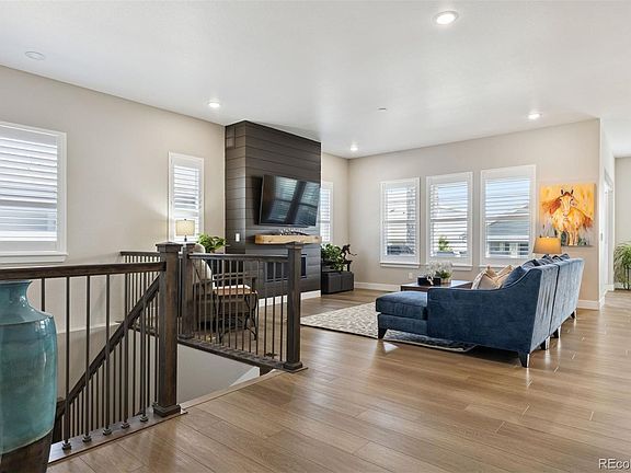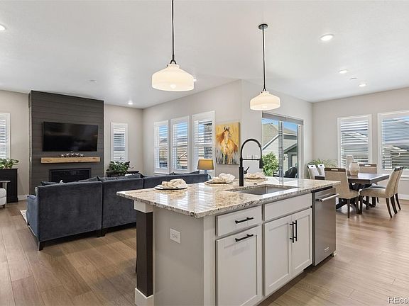 Perfectly situated across from Sunset Park in Hilltop at Inspiration, this thoughtfully designed ranch home captures year-round sunsets and easy, low-maintenance living. The open floorplan seamlessly unites the great room, dining, and chef’s kitchen, creating a light-filled space ideal for entertaining and everyday comfort. The kitchen is a true centerpiece, showcasing an expansive island, granite countertops, upgraded appliances, soft-close cabinetry with pull-out shelving, and a generous walk-in pantry. The private primary suite is a serene retreat with a spa-like bath featuring a no-glass walk-in shower and a custom-designed closet. Throughout the home, you’ll find designer flooring, elegant paint selections, stylish window coverings, and a striking fireplace for added warmth and character. Solar panels, EV charging readiness, and a SimpliSafe system combine modern convenience with peace of mind. The oversized two-car garage includes built-in storage, while the unfinished basement with rough-in plumbing offers room to grow. Relax in the backyard with peaceful morning light, or unwind on the front porch as the sun sets over the park. Nestled in Aurora’s premier 55+ community, Hilltop at Inspiration, residents enjoy access to a private clubhouse, fitness center, pickleball, trails, and an active calendar of clubs and events. With Southlands shopping and dining just minutes away, this home delivers luxury, comfort, and community all in one.