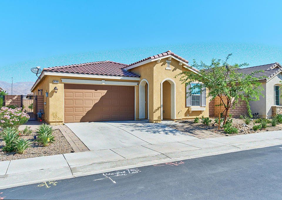 Welcome to your perfect desert oasis! This beautifully maintained home offers resort-style living with very low property taxes and low HOA dues, making it ideal for senior citizens seeking a vibrant yet affordable lifestyle. Located just minute from the I-10 freeway, top-rated casinos, entertainment, and a public gold course, this community truly has it all!Enjoy a wide range of amenities, including.An indoor lap pool for year-round exercise. A stunning outdoor resort-style pool perfect for entertainment . Tennis courts and scenic walking/hiking trails. 24-hour guarded security for peace of mind. This home features: 2 bedrooms and a den/office. 2 ful bathrooms. A Chefs kitchen with an open concept layout. High ceilings and window coverings for added comfort and privacy. A low-maintenance backyard with synthetic grass and custom landscaping. Plenty of room to walk, bike and enjoy the neighborhood. Don't miss on this rare opportunity to live the good life for less! Call now to schedule your private tour.