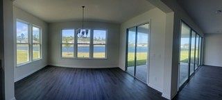 BEAUTIFUL NEW CONSTRUCTION single story home on large lakefront lot w/fantastic views. Pavered Driveway. Home has an open concept, split bedroom plan in neutral designer colors & features a true chef's kitchen w/a massive 10' island, quartz counter tops, double ovens, windows in kitchen & surrounding the sunroom that provide for tons of natural light to flood in. Primary bedroom has walk in closet w/ensuite offering separate water closet, soaking tub and shower. Durable luxury vinyl plank flooring is found throughout with soft carpet in the bedrooms. Amelia Walk is centrally located in Nassau County, off Amelia Concourse. Convenience is key, 15 mins to beaches and historic Fernandina, 25 mins to JAX Airport, 5 mins to shopping & dining. Amelia Walk offers a relaxed, upscale residential neighborhood with nearby public golf courses without the obligation for Food & Beverage spending. Community has private gym, tennis courts, resort style pool, clubhouse, soccer field, playground, etc.