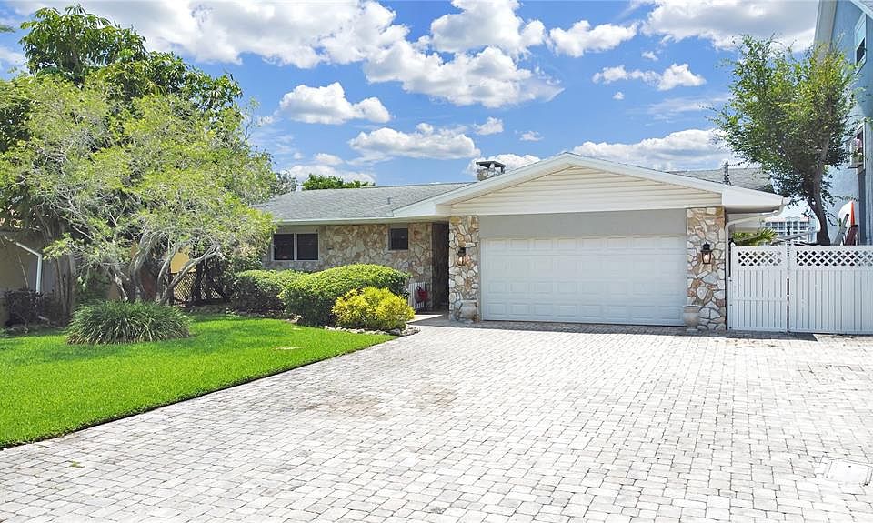 WATERFRONT HOME WITH AMAZING VIEWS IN REDINGTON SHORES: Spacious 2-bedroom 2 bath home offers 1442 heated square feet of living space and two car garage. Living room has a large stone fireplace, large dining area that sets just off the kitchen. Nice roomy kitchen with breakfast bar, with eat in area with a great water view. Custom tile throughout living room, dining room and kitchen. Large 18 x 14 Master bedroom, with walk-in closet and Master Bath with shower stall. Second bedroom is 14 x 11, with lots of room for your guest. Open the sliding glass doors to the oversized open patio with amazing views or the water, the ultimate place to relax or entertain. Enjoy the Large dock for fishing, your boat or jet skis. Hurricane shutters are installed on some windows. Dock redone 2019, New AC installed 2019. Redington Shores offers abundant outdoor activities including biking, boating and sunset strolls along the beach. Residents can easily access roadways connecting them with downtown St. Petersburg and Tampa, Tampa International Airport and St. Pete-Clearwater International Airport, world-class museums and concert venues, golf and tennis resorts and more.