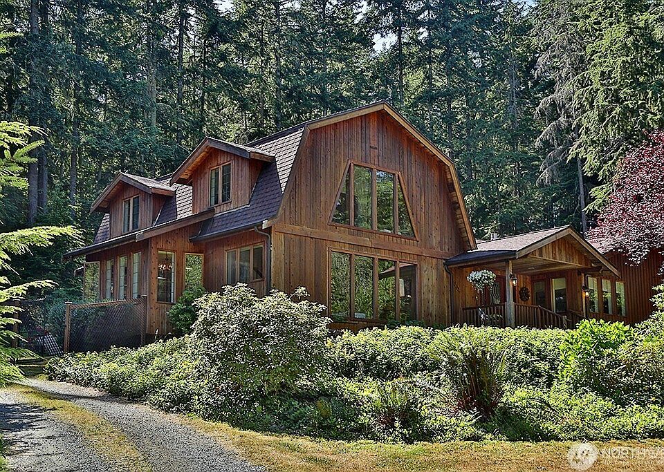 A beautiful, secluded home in a meadow, surrounded by your own forest. A dining area adjoins the spacious living room, and adjacent to the open kitchen is a cozy breakfast/lunch space. The master suite is on the main level (with its own library/sitting room). For those quiet evenings enjoy the library with its beautiful built-in desk and shelving. Upstairs there are two large bedrooms with a shared, full bathroom. The carport has an attached shop (or it can be your studio). Be sure to follow the trail through the woods (starts on the side of the yard opposite the carport) to the parked-out picnic area, with its firepit and covered sitting area. Your new home is located only 5 miles from Freeland shopping center.