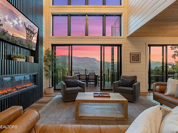 Experience true mountain luxury in this stunning 3-bedroom contemporary cabin featuring breathtaking views, high-end furnishings, and exceptional rental potential. Every detail has been designed for comfort and style-from the elegant living spaces with natural lighting to a gourmet kitchen and spa inspired bathrooms. Step inside to a grand open-concept living area with soaring ceilings, a beautiful fireplace and wall of glass that showcase the sweeping mountain scenery. The perfect blend of comfort and sophistication and truly gorgeous inside and out. Enjoy three spacious bedrooms, each with a private ensuite bath, plus two additional half baths for convenience. Down stairs you will find a cozy family room and game room perfect for movie night or just spending quality time. The pool area is a showstopper and ready for you and your guest to enjoy year round. Tons of outdoor space to enjoy the breathtaking views from each level. Unwind and spend a nice romantic evening sitting in the hot tub or relaxing by the outdoor fireplace. Soak in the mountain sunsets from the spacious decks and enjoy the peace and privacy of your own luxury retreat. The subdivision offers an amazing pay to place Golf Course, three outdoor swimming pools and a new pickle ball court. This is the one you need to see in person to appreciate just how stellar it is!