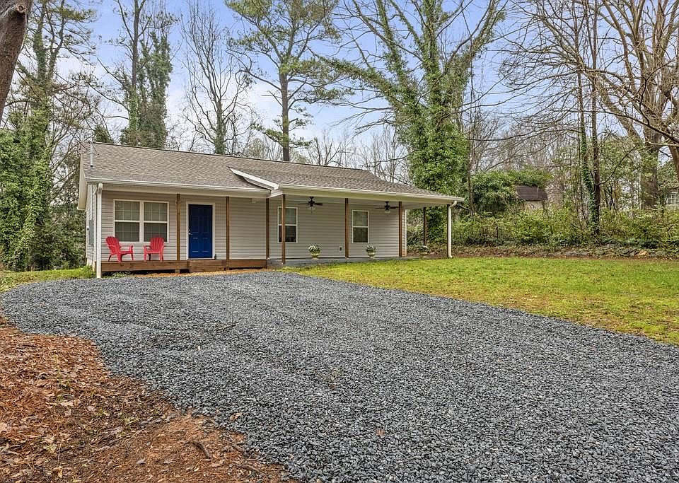 Huge level backyardNewer ranch homeLovely covered front porchLarge level lotWalk in closetsUpgraded modern kitchenLarge laundry room