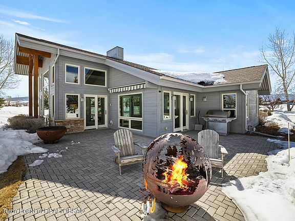 Situated in the coveted Bar B Bar subdivision, where the breathtaking Teton views will leave you spellbound, this home is ideally situated on 1.51-acres abutting an elk migration corridor. Enjoy the 270-degree views across the open space from your dreamy back patio perfect for entertaining, getting cozy by the fire, and an al fresco dinner. The expansive open space to the north provides privacy for an abundance of wildlife visitors year-round, as well as a cross-country ski track for homeowners in the winter. From the moment you step inside the front door you feel at home. Cathedral ceilings and beautiful custom woodwork frame your foyer and a double-sided gas fireplace gives way to a cozy living room with big views. You will be taken aback by the dining room that shows off views as far as the eye can see and the Grand Teton accenting this space perfectly. The west wing of the home offers a gracious primary suite with a walk-in closet, beautifully updated master bathroom with a jetted tub and custom cabinetry. The eastern wing, the guest wing, includes 3 additional bedrooms including the junior suite and one currently serving as an office, the laundry, tons of closet storage and the incredible 1,220 sf heated and drained 3 stall garage (10' wide doors) complete with a workshop. Imagine waking up every morning to the sight of grazing elks and soaring bald eagles in front of the iconic Teton range. This truly idyllic setting is a rare find in one of the most sought-after locations in Jackson, Wyoming, and offers an opportunity of a lifetime to own a slice of paradise in the heart of the West.