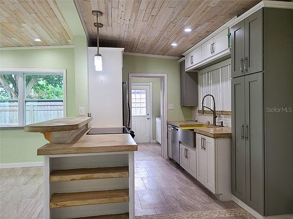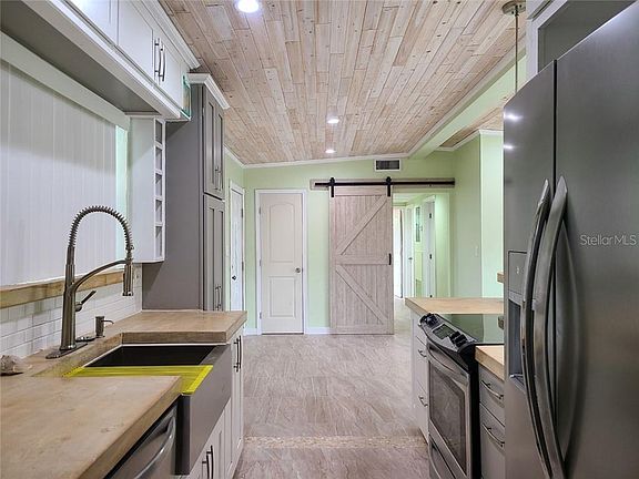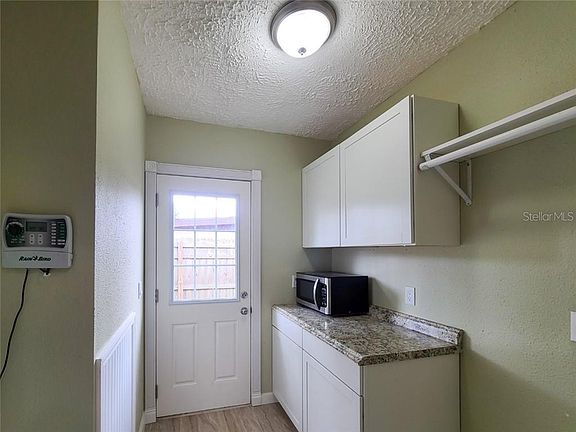 Totally Updated and Remodeled 3/2 Home With Large Secure Backyard. This home looks like new on the inside. New floors, new kitchen, updated bathrooms, decorative ceiling, new doors, updated windows, new gutters and so much more. There is an inside laundry room and outside is a large secure back yard with a poured slab for you to build a nice workshop, new painted stucco on exterior walls, newer A/C, outside utility room and a new installed pump ready for you to set up the sprinkler system on a well. This is a must see home, great for an investor or first time home buyer and will sell fast!