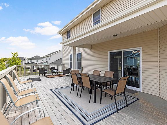 Welcome to this stunning 5-year-new corner lot home that exudes elegance and modern comfort in every corner. Located in the desired Hononegah School District and serene neighborhood of Old River Hills. Aesthetically pleasing curb appeal with low-maintenance landscaping. The 4-car garage provides ample space for vehicles, storage, or a workshop. The backyard is enclosed with an upscale wrought iron fence, ensuring both privacy and style. Enjoy outdoor gatherings on the covered commercial-grade deck (suitable to hold an addition if needed), as well as a brick fire pit. The deck is also ready to host a hot tub as it is set up with 220 amp electric. Yard irrigation system for a lush lawn with minimal effort. You'll be greeted by a large covered porch into an inviting foyer that sets the tone for the entire home. The open-concept living area is complemented by an abundance of natural light, creating a warm and welcoming atmosphere. The kitchen is a chef's dream, featuring granite countertops, stainless steel appliances, a water filtration system, and a walk-in pantry with built-in shelving for organization. The dining area adjacent to the kitchen is ideal for family meals or entertaining guests. 4 generously sized bedrooms provide plenty of space for everyone in the household. The master bedroom boasts a lighted tray ceiling, adding a touch of luxury. The master bathroom is a spa-like haven with a custom rainfall shower room accompanied by a very large walk-in closet. The laundry room is sure to please- it features granite countertops, plenty of cabinets, and a utility sink, making laundry tasks a breeze. The home is equipped with August security smart locks as well as a Ring Security System with exterior cameras, ensuring peace of mind and safety. The enormous basement is wrapped for extra insulation and plumbed for an additional bathroom and also includes 2 egress windows just ready for whatever you'd like to make it!