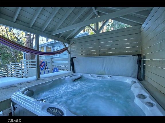 Welcome to a charming oasis located in the Arrowhead Villas of Lake Arrowhead. This delightful getaway is situated on a corner lot, offering plenty of parking and convenient walking distance to the Tudor House, known for its concerts, plays, and events. The main floor features a cozy living room, a well-equipped kitchen, a dining area, one bedroom, a 3/4 bath, and a laundry room. Upstairs, you'll find two beautiful rooms, each with a full bath en suite, providing comfort and privacy. The custom-fenced yard is perfect for relaxation and entertainment, boasting a newly built gazebo and spa. Equipped with an on-demand water heater, there is no shortage of hot water. Enjoy the serene surroundings and the convenience of modern amenities in this charming Arrowhead Villas home. Parking for up to 4 cars, current STR permit, newer retaining wall and fully fenced in yard - new paint inside. Photos of Lake Arrowhead are drone shots and do not reflect a view from the property. Property is also listed for full time rent.